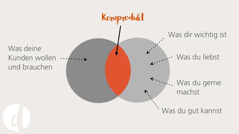 Wo decken sich die Bedürfnisse deiner Lieblingskunden mit deinen Stärken, deiner Leidenschaft und deinem Warum? Genau dort befindet sich dein Kernprodukt.