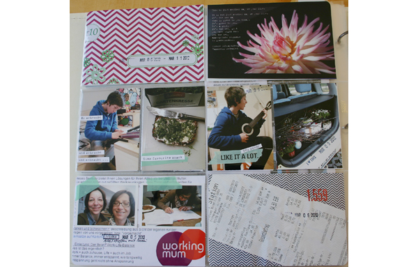 Bin etwas hintendran. Ich stelle fest: Project Life macht mehr Spaß, wenn man nicht so viel Zeit vergehen lässt zwischen dem Erleben und dem „Verarbeiten“ im Album. Es fällt schwerer, die Stimmung und das Charakteristische einer Woche aufleben zu lassen, wenn sie schon länger vorbei ist und das Leben die Ereignisse teilweise schon wieder „überholt“ hat. Trotzdem bereitet es mir immer noch Freude, die Seiten zu erstellen und ich reiche hiermit Woche 10 nach.