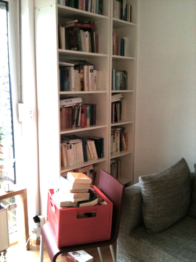 Weiter ging es mit den Bücherregalen – hier kommen wir zu einem meiner wunden Punkte. Wir haben viele Bücher. Sehr viele Bücher. Zuviele Bücher für unser recht kleines Haus. Die Männer in meiner Familie (habe ich schon mal erwähnt, dass diese sich absolut in der Überzahl befinden?) dringen seit Jahren darauf, Bücher wegzuwerfen und dadurch Platz zu gewinnen. Bis konnte ich mich erfolgreich dagegen wehren und – abgesehen von einigen Taschenbuch-Romanen minderer Qualität – meinen Bücherschatz verteidigen, ja immer weiter ausbauen.